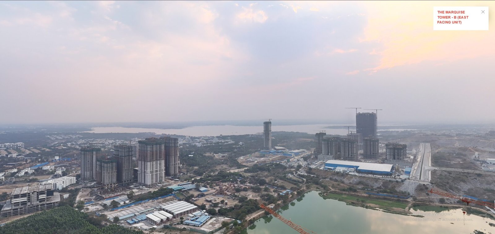 The Marquise features a grand clubhouse (G+5) spread across 51,234 sq.ft., along with an expansive 87,000 sq.ft. podium level. The landscaped spaces offer a 360° view of Kokapet Lake and Osman Sagar Lake. Every flat is a corner flat, ensuring maximum light and ventilation, and all homes are fully Vastu-compliant. The project is located along a 120 ft. (36 m) wide road, providing excellent accessibility. Equipped with high-speed automatic elevators for both passengers and goods, each block has dedicated lobbies for added convenience, and the design includes a podium parking structure rising up to 4 levels above ground.