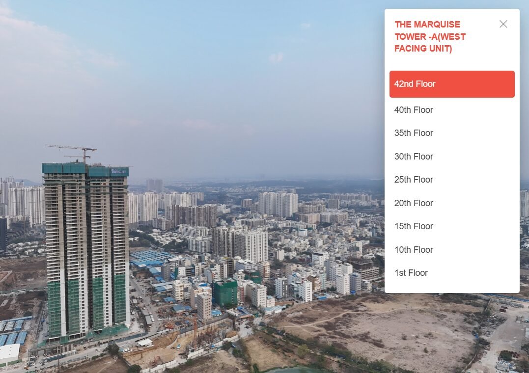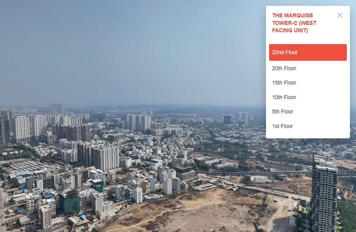 “The Marquise” is located at Kokapet, near the Financial District ORR Exit 1. It is a luxury gated community project spread over 5 acres of land, consisting of 3 towers with a total of 295 flats.